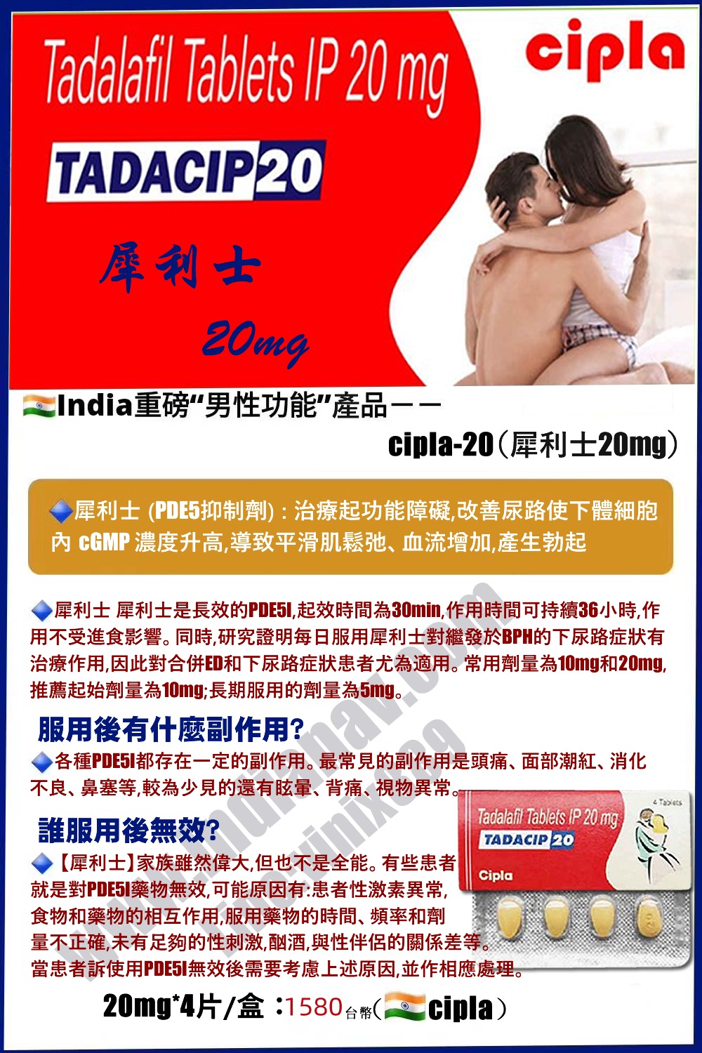 cipla犀利士20mg|治療勃起功能障礙|改善尿路細胞|ED直接效果|增強男性性功能