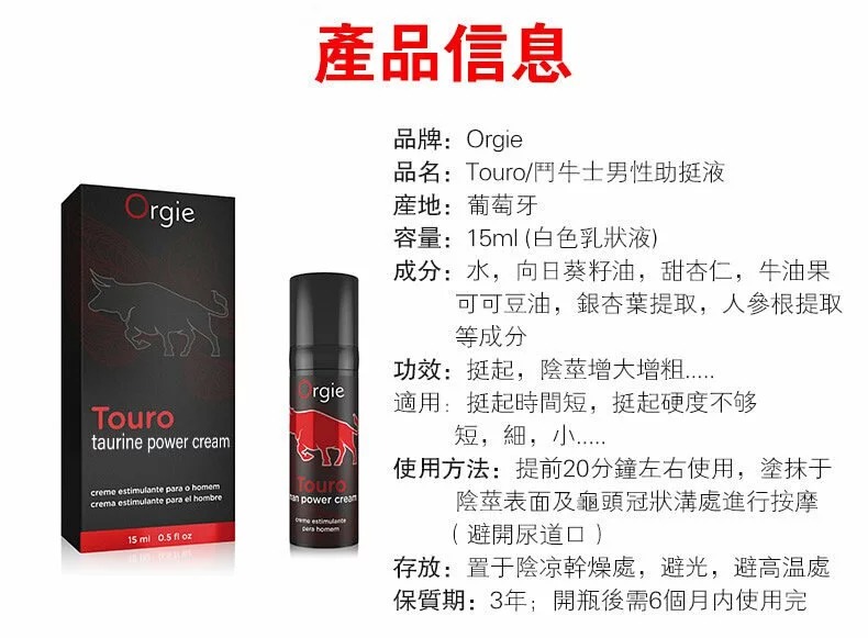 Touro鬥牛士男性助挺液|陰莖增大膏|促進勃起再接再勵|堅挺持久性表現